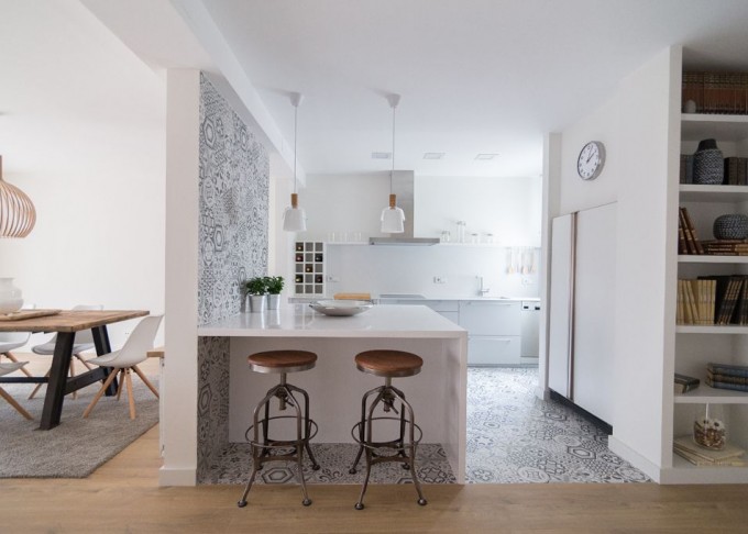 Restyling of a flat in the area of Galvany of Barcelona, prioritizing the wide and interconnected spaces, as well as the natural lighting of these spaces.
