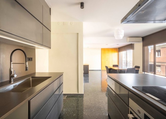 L'eliminació d'un envà que impedia tenir perspectiva visual, alhora que situant una nova cuina dota d'un espai generós i ampli amb vistes. La ubicació d'una illa central a la cuina oberta permet cuinar de cara al paisatge.