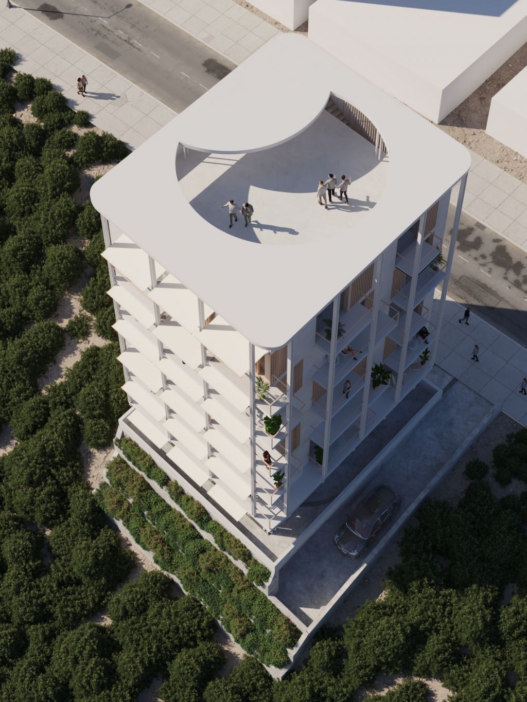 El projecte s’estructura a partir d’una visió fresca, lleugera i subtil, en la qual la forma i la materialitat s’integren en un llenguatge arquitectònic depurat, honest i atemporal. L’edifici es concep com un volum essencial i contingut, que s’adapta de manera orgànica a la topografia en pendent mitjançant una implantació esglaonada, respectuosa amb el paisatge.