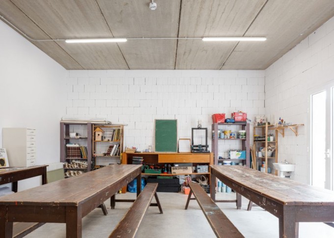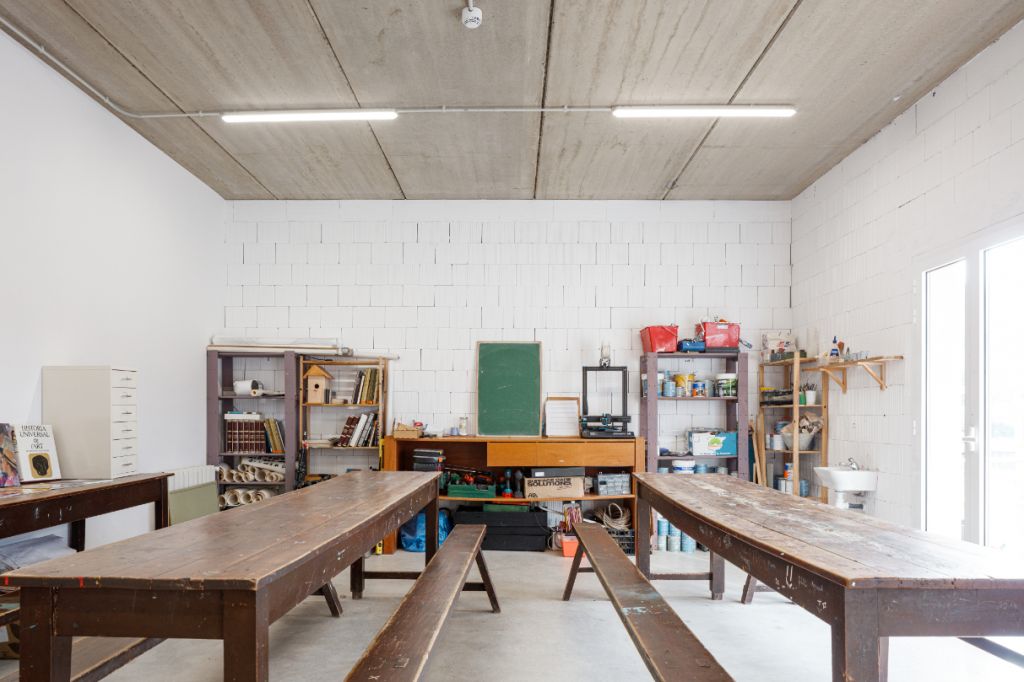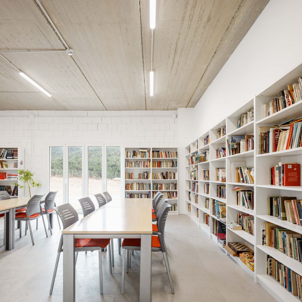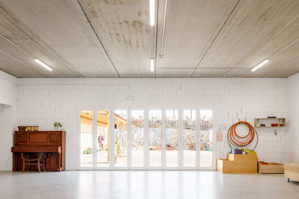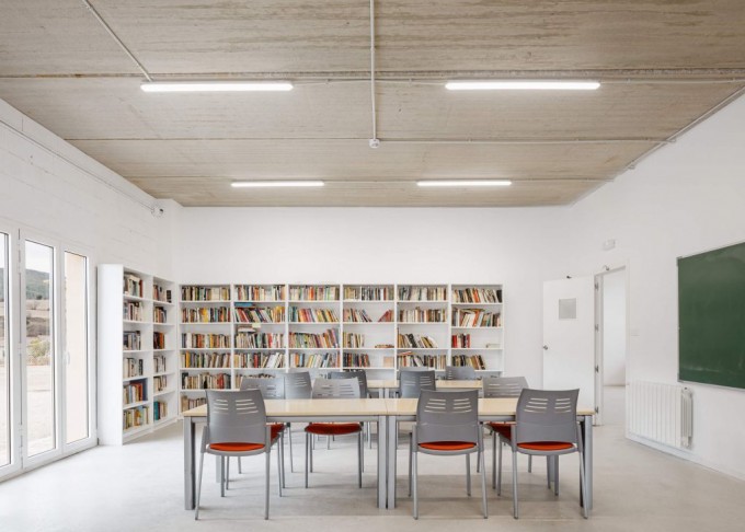 La distribució de l’escola –infantil, primària i secundària– s’organitza al voltant d’una plaça central compartida que promou la comunitat i la interacció entre diferents edats. Alhora, espais com la biblioteca, els tallers, la música o el laboratori conviden a la creació i al descobriment, tot mantenint el respecte per la naturalesa i el paisatge rural.