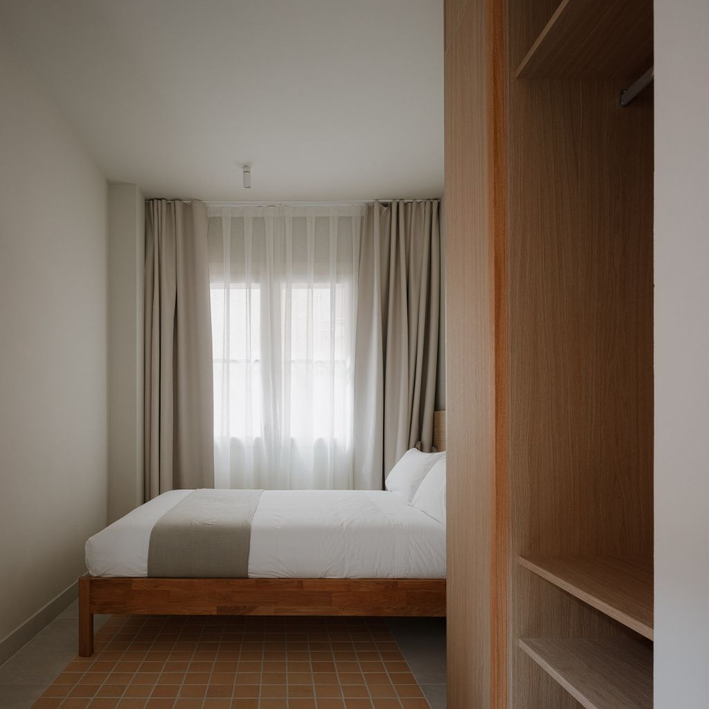 Outsite Barcelona és un espai modern de coliving al cor del Barri Gòtic, dissenyat per a teletreballadors i persones creatives. Les habitacions són de sostres alts, grans finestres, ampli espai d'emmagatzematge, escriptoris amb cadires còmodes, i algunes inclouen àrees d'estar privades amb un sofà.