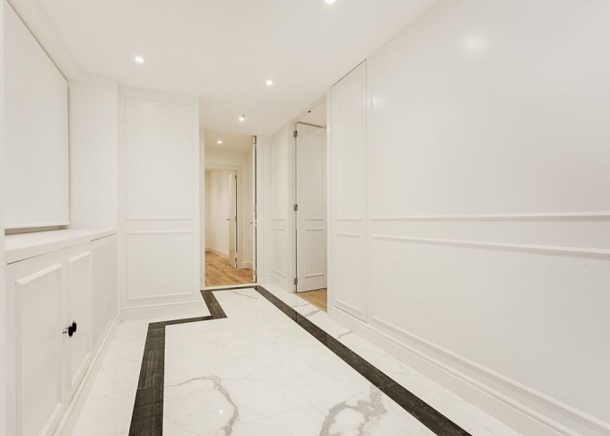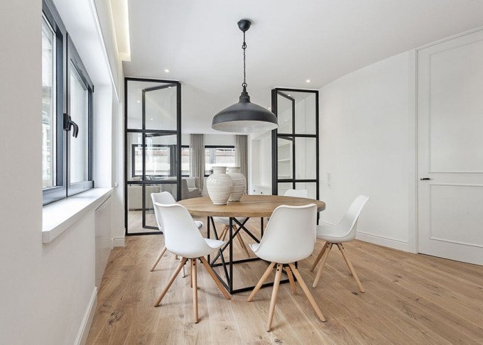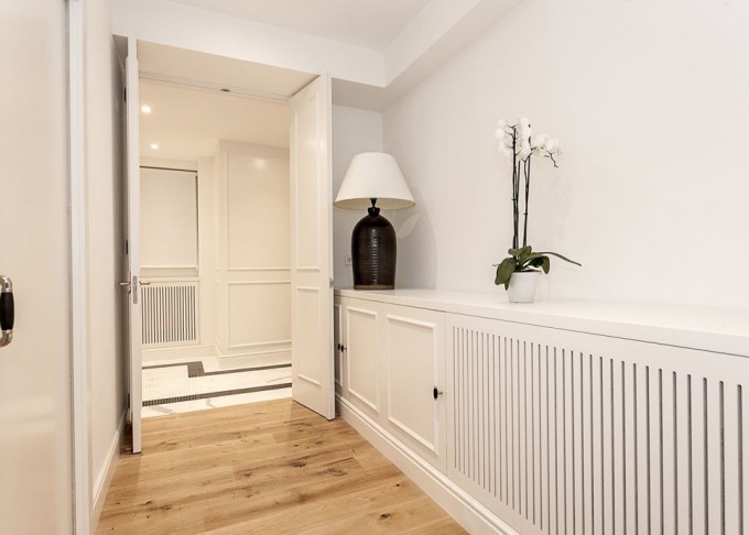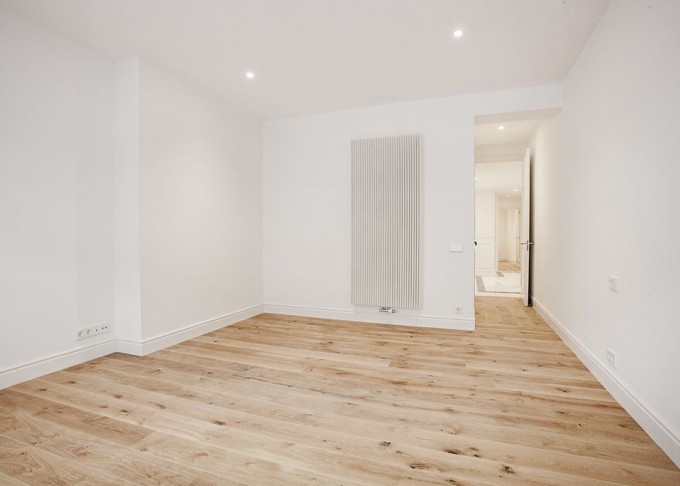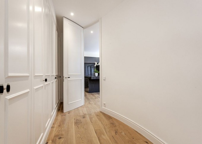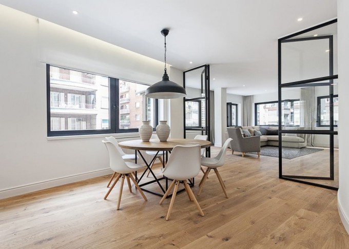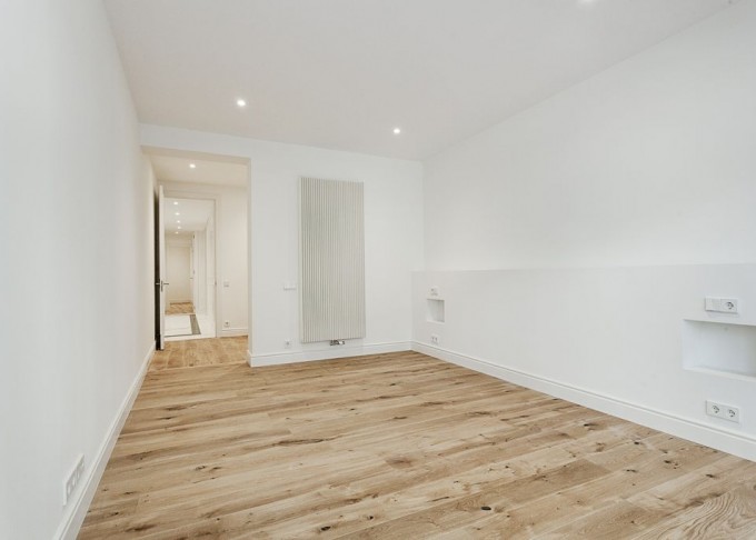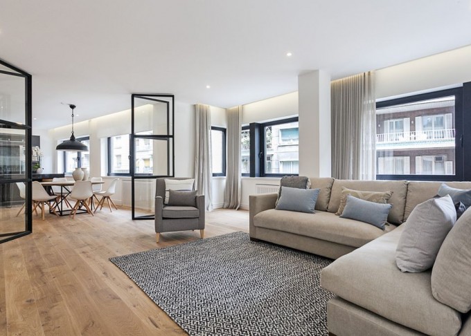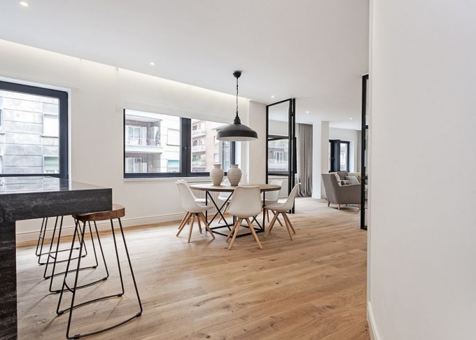 El pis es dota d'amplis dormitoris, cadascun d'ells proveïts d'un espai vestidor auxiliar. Els colors blanc i negre cobren protagonisme en la intervenció, mentre que la presència de fusta aporta calidesa a les estances.