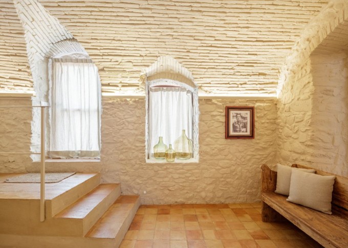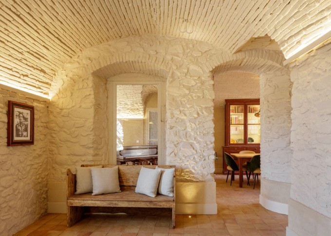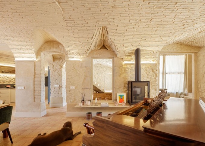 Per tant, es procedeix a baixar el nivell de la planta baixa obrint-la al terreny posterior, es completa la volta de canó, s'enllueixen els sostres de volta -després de trencar els revoltons ceràmics que formen els forjats-, es minimitza l'impacte de la presència de pedra de color grisenc -que no és pròpia de la zona-, es formen nous forats de façana -mantenint cert format vertical dels mateixos-, s'obre un pati anglès proper a la façana al carrer, etc...