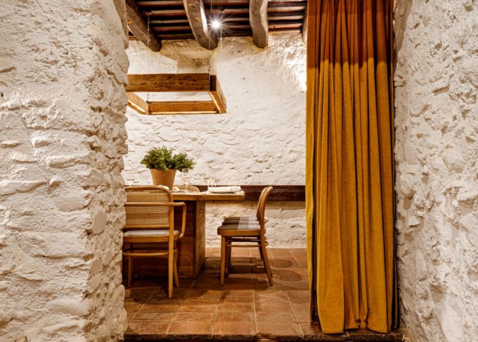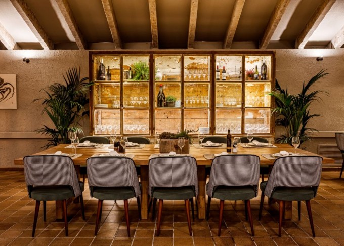 Amb una proposta gastronòmica fonamentada en els productes de proximitat i la brasa lenta, els forns de carbó adquireixen protagonisme com a avantsala del menjador principal; situats en un espai a la vista en el que es couen totes les històries del restaurant.