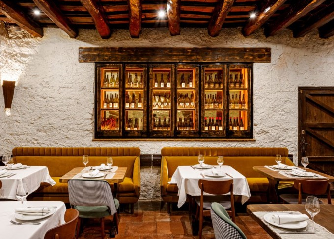 Dos colors -verd oliva i groc mostassa- predominen en tot l'espai interior. Així, la natura exterior i el foc de la brasa queden representats en els dos colors, que també apareixen en les cartes i als uniformes dels cambrers.