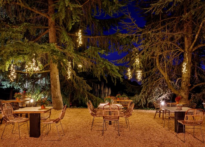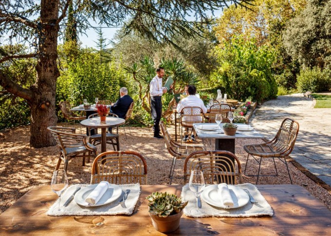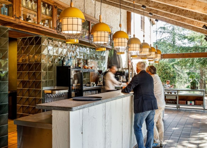L'espai del saló és ampli i lluminós, i emmarca visualment el verd del jardí exterior i la seva meravellosa alzina central, el que permet descomprimir la mirada. Taules rodones situades entre els elements estructurals de l'espai creen racons íntims.