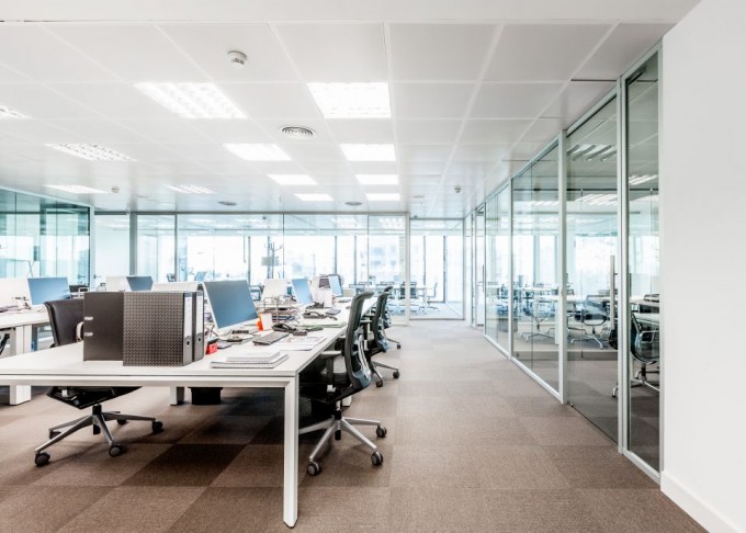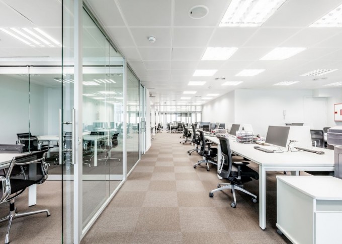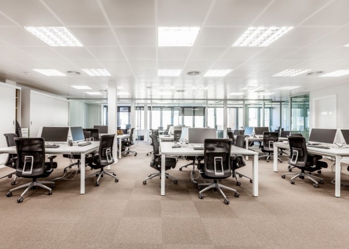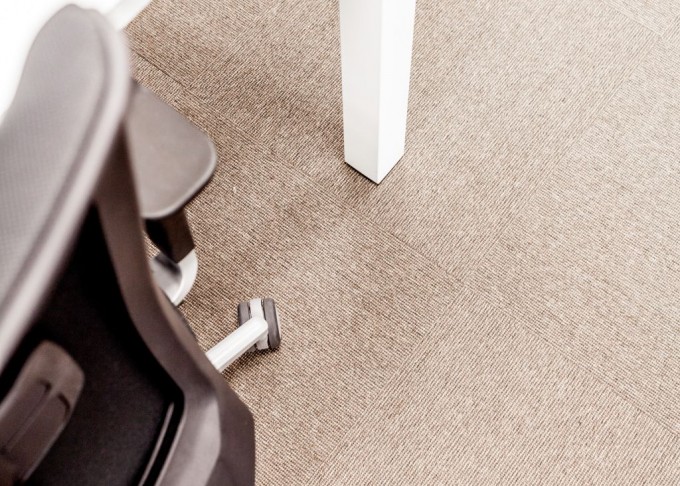 Una moqueta de colors grisos i marrons s'ha col·locat en tota l'oficina unificant l'espai.