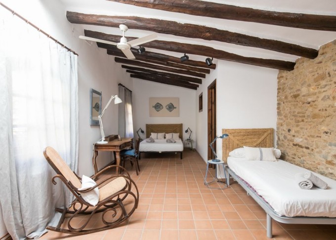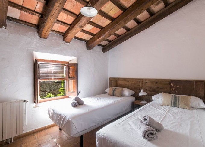 Ca l'Agutzil sleeps a maximum of 12 people in its 5 cosy bedrooms, all with very comfortable beds, and the charm of the sloping roof and wooden beams typical of Catalan country homes.