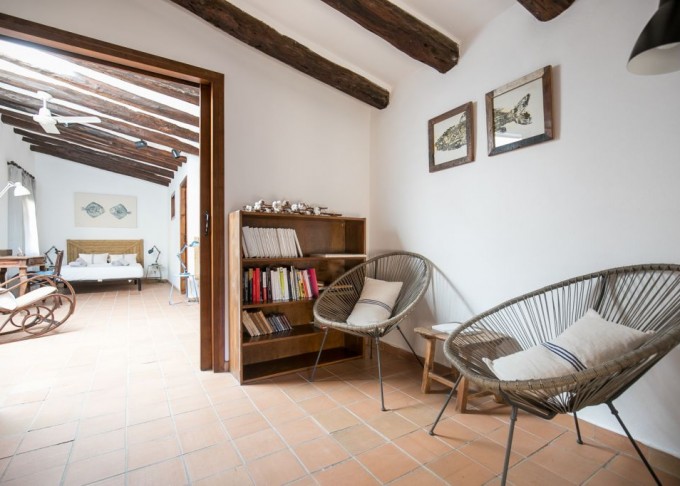 The 400 m2 property consists of two parts: the main house and an old hay barn. It has a fantastic 30 m2 porch, which connects both buildings, and has a shady patio of façades covered with beautiful seasonal ivy. It also has a lovely intimate and sunny 90 m2 garden with an old lemon tree and a little swimming pool, overlooked by the ceramic latticework of the main house's balconies which are draped in violet bougainvillea.