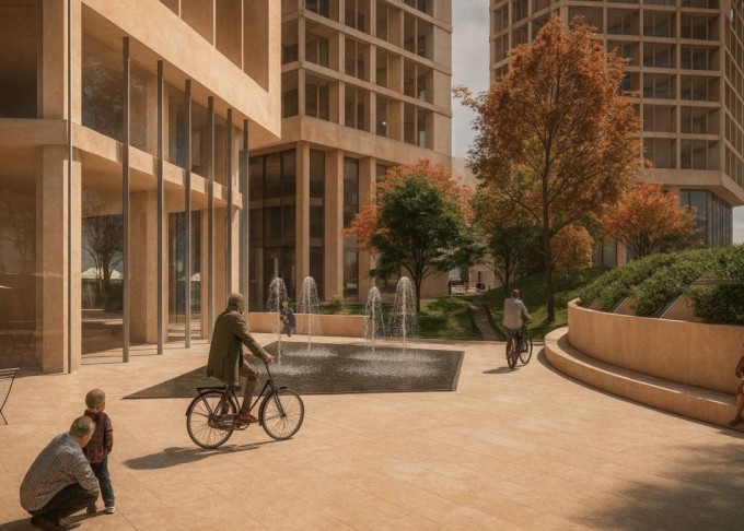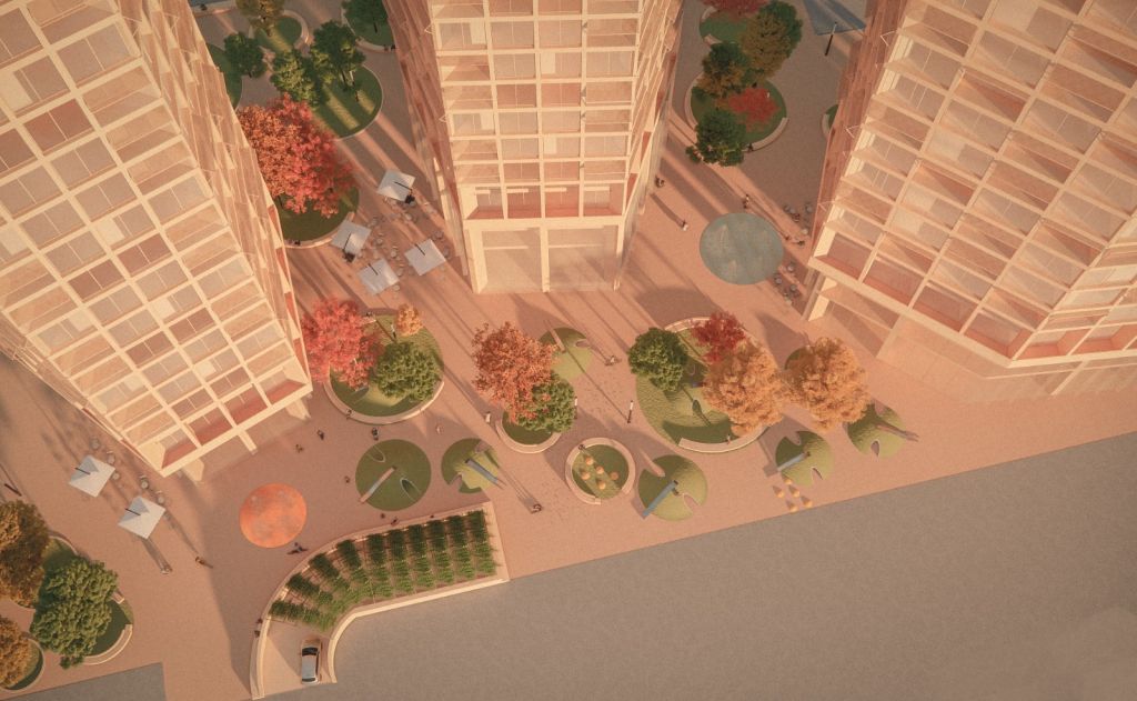 Mixed-use towers in an urban regeneration area in Fusha Aviacionit, Tirana (Albania).