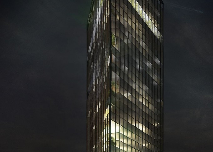 The encounter within the base of the tower and the ground area is generated throughout a central atrium where all vertical communications are placed, generating a sensation of weightlessness.