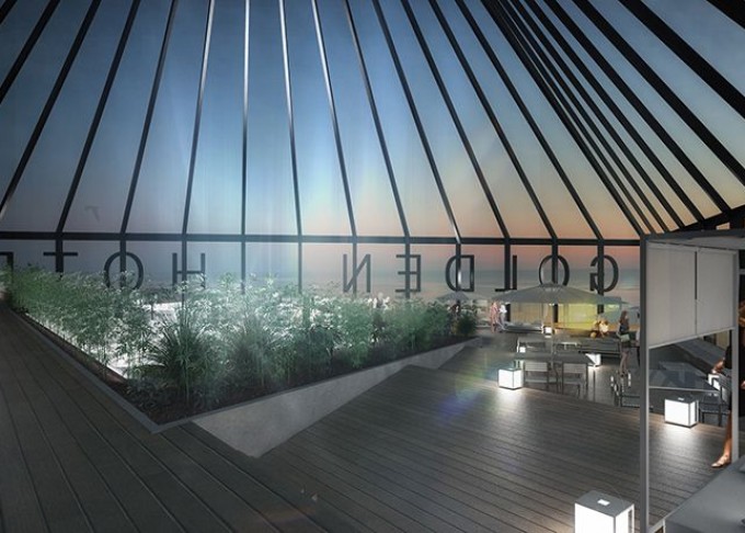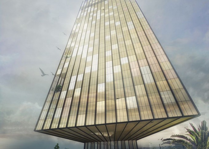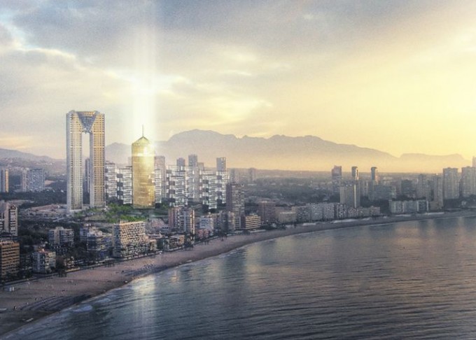 Project for a High Rise Luxury Hotel, placed at the frontline coastline of Benidorm; its triangular plan maximizes the usable façade and offers sea views to the 85% of the rooms. This decision also optimizes the relationship between the total floor area and the total room area.
