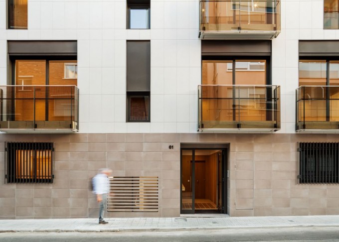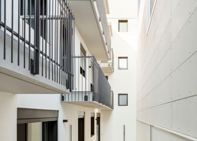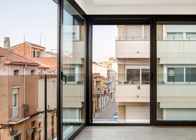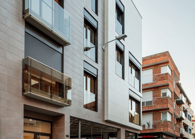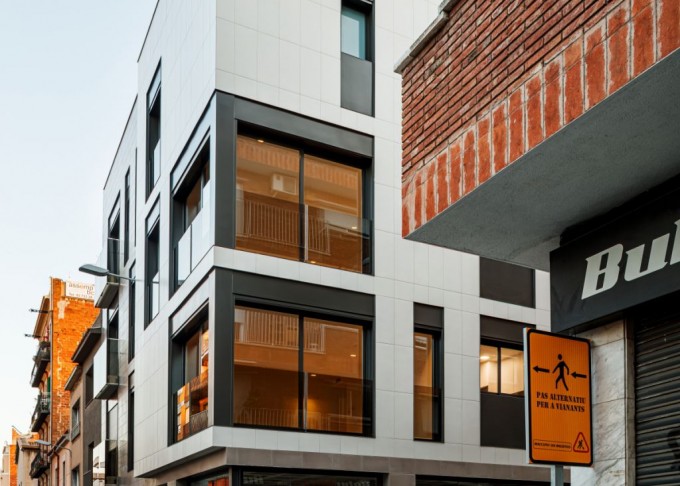 The residential block is located in Terrassa city centre (Barcelona). It is a rectangular plot on the corner of two roads, one of which is very busy.