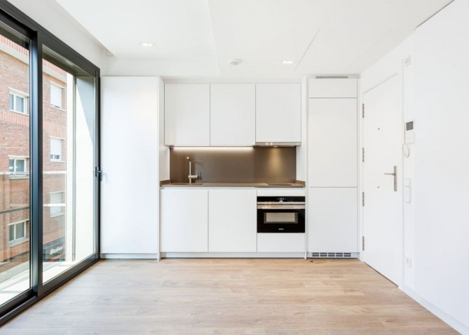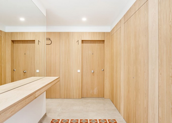 The flats with two or more bedrooms have a double orientation – enjoying façades looking onto the street and into the interior courtyard. This means they have good cross ventilation, with secondary spaces in the central strip of each flat.