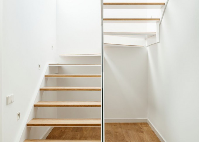 To meet these conditions, the building has two stairwells of different heights, in accordance with urban planning regulations, with independent access from the public thoroughfares. There is a basement level to be used as parking for the flats.