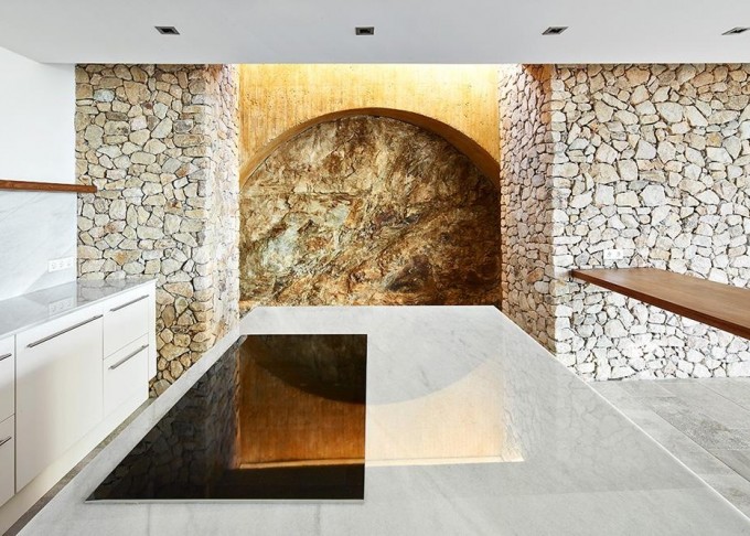 Vivienda de diseño en Sa Riera, cuya forma en abanico establece de manera inequívoca las relaciones entre la casa y el mar, el terreno y la geografía abrupta de la Costa Brava, el suelo rocoso y el espectáculo de los cielos del Mediterráneo.