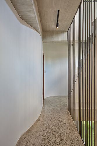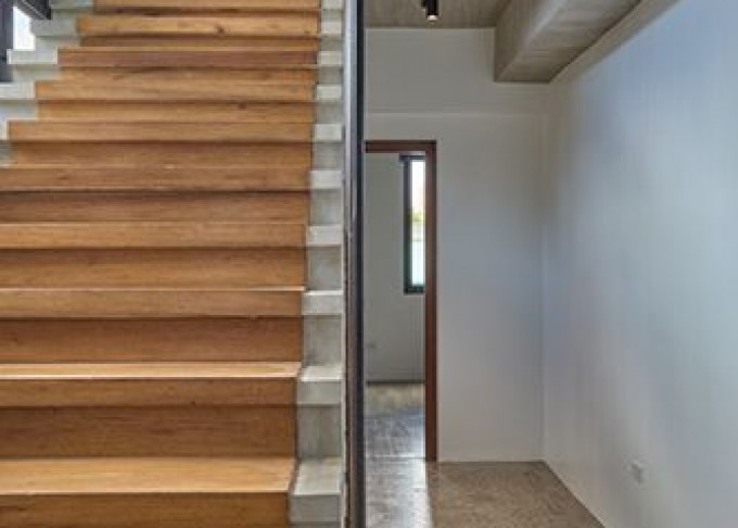 En el interior de las viviendas, aparecen elementos de mobiliario de madera que se fabricarán de forma artesanal, de geometrías curvilíneas en contraposición a la linealidad espacial.