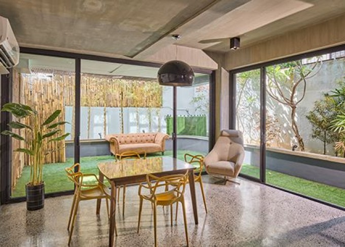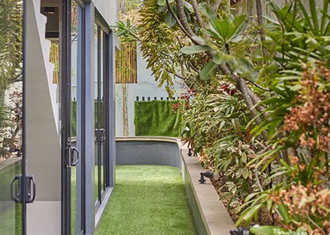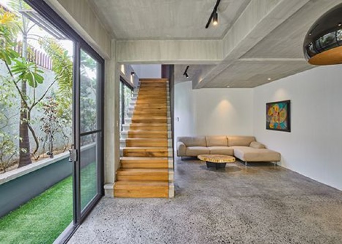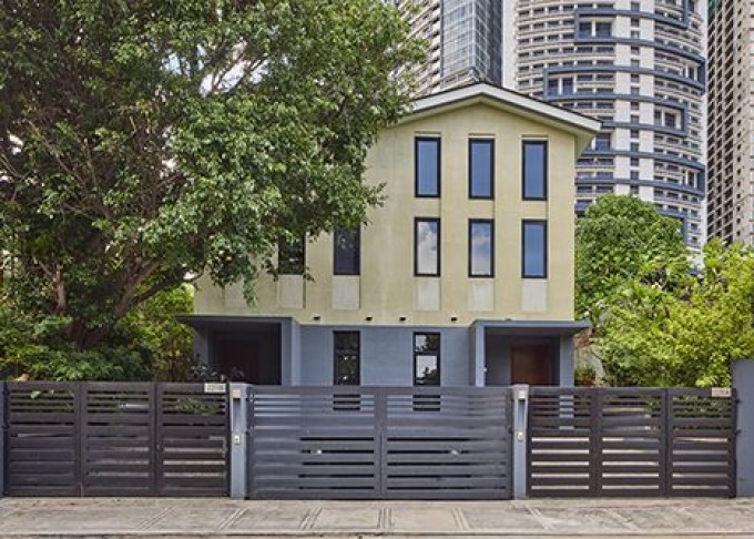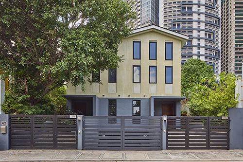 Construcción de dos casas pareadas con jardín en la zona residencial de baja densidad de San Miguel Village, en Makati, MetroManila, Filipinas.