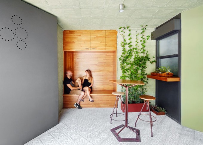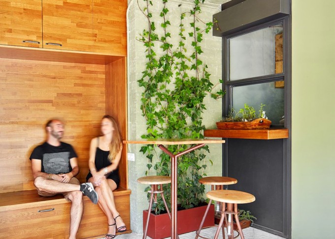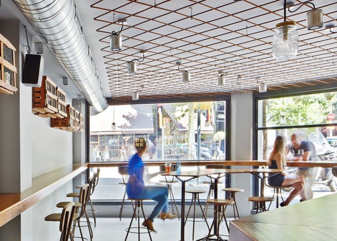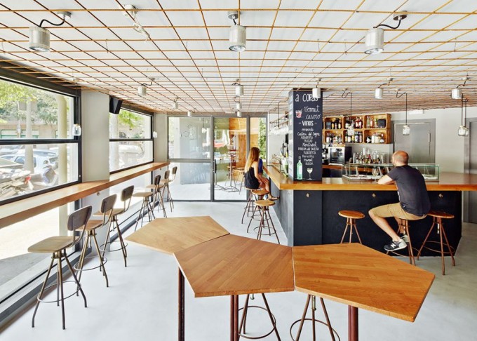 Diseño interior de un bar en l'Eixample de Barcelona. La idea principal de este bar es que el cliente pueda gozar de una experiencia gastronómica en la que beber, comer y compartir se entrelazan: un sitio en el que realmente no se comparta una sola mesa, sino que se comparta la mayor parte de las mesas y barras, fomentando así la socialización vinculada a la comida y la bebida.