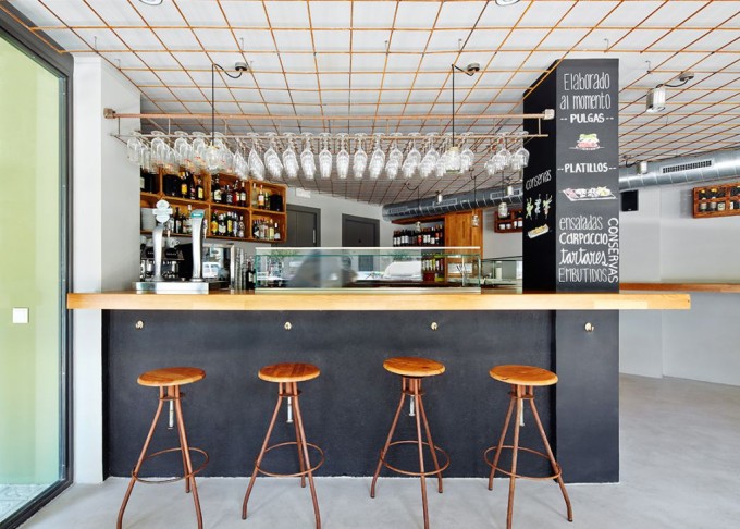 Interiorismo y diseño personalizado de mobiliario para un bar de tapas y platillos