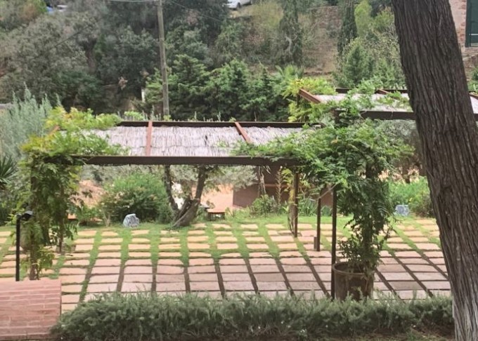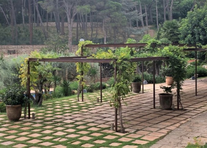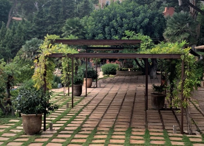 La fragmentación en tres módulos, en tres pérgolas, cada una de ellas de distinta altura, contribuye a ofrecer un aspecto más amable, espontáneo y acorde con el aspecto buscado.