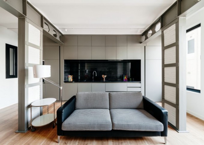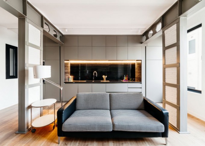 Rehabilitación de un primer piso de dos habitaciones en el barrio de Gràcia de Barcelona, iluminado a través de sus dos fachadas (calle y patio interior). El inmueble está caracterizado por sus techos abovedados.