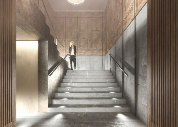 Los vestíbulos de los edificios de este noble paseo tradicionalmente tienen una configuración y materialización muy noble, e incorporan habitualmente elementos clásicos que les aporta gran personalidad. El diseño se centra en la recuperación del espacio original, respetando la estructura histórica y manteniendo la materialidad originales, tratando que la nueva intervención huya de burdas imitaciones.